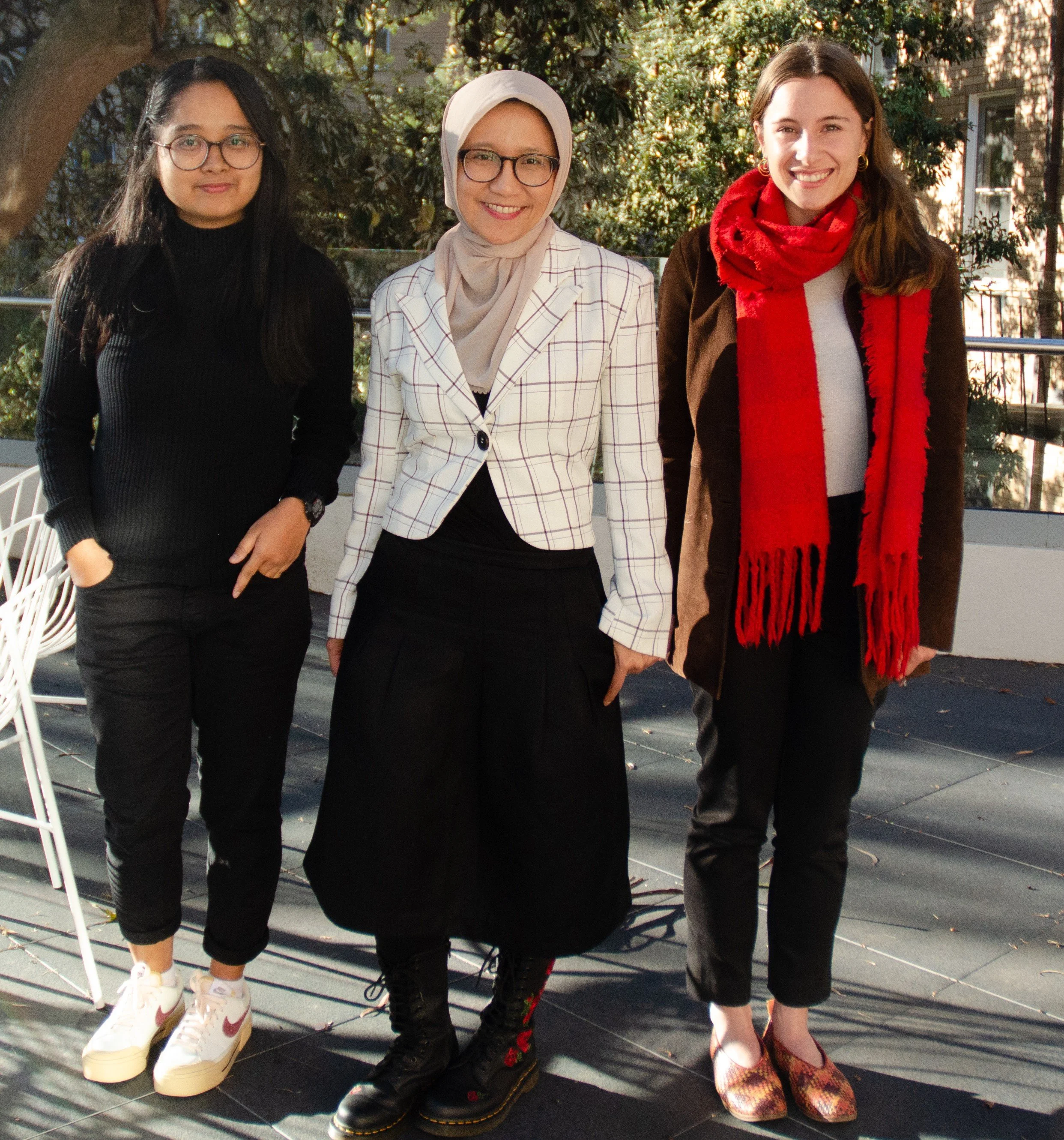 Eva Nisa (centre), with 2023 Student Research Grant winners Rani Dwi Putri and Jayne Fendyk